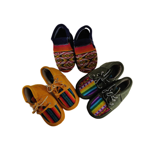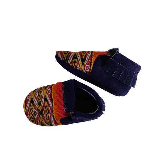 Baby Infant Toddler Shoes Slip-on Soft Sole Leather Moccasins Pre-Walkers w/Handmade Peruvian Textiles