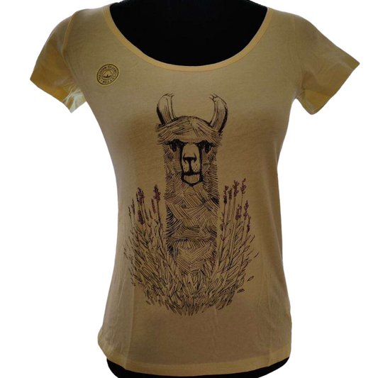 ARA-WAK Llama Love Short Sleeve Women's Deep Crew Neck - 100% Organic Peruvian Pima Cotton