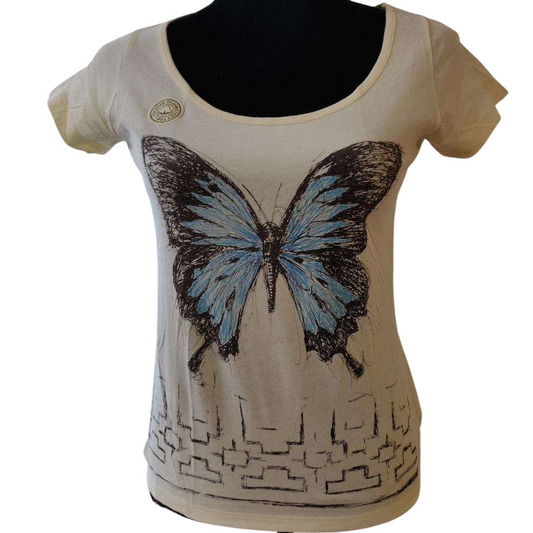 ARA-WAK Butterfly Short Sleeve Women's Deep Crew Neck - 100% Organic Peruvian Pima Cotton