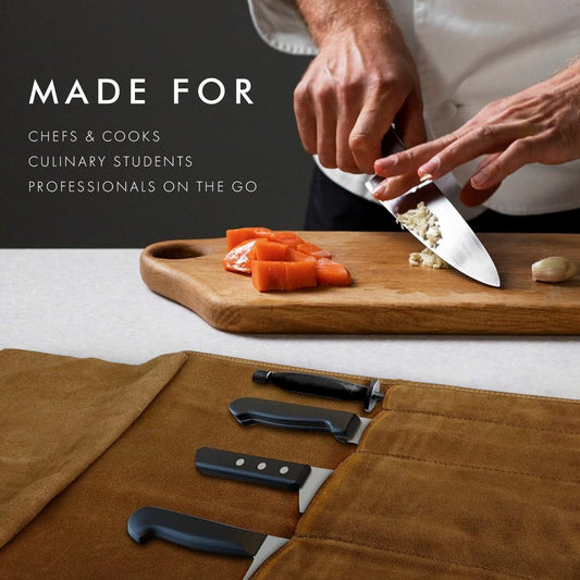 Premium Full-Grain Leather Chef Knife Roll Bag