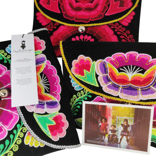 "Agustina" Luxury Elegant Evening Clutch Purse with Exquisite Hand Embroidered Flower Design