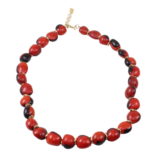 Gold Filled 18kt Classic Adjustable Necklace & Bracelet Set w/Red & Black Seed Beads