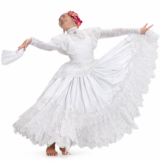 4 Piece Marinera Norteña Heritage Dress - White Bridal Imperial Lace Edition