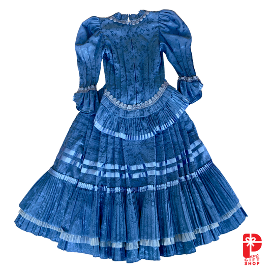 2 Piece - Marinera Norteña Heritage Dress - Blue Brocade Pleated Elegance Edition