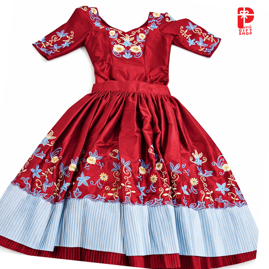 2 Piece Marinera Norteña Heritage Dress – Granate Imperial Embroidered Edition