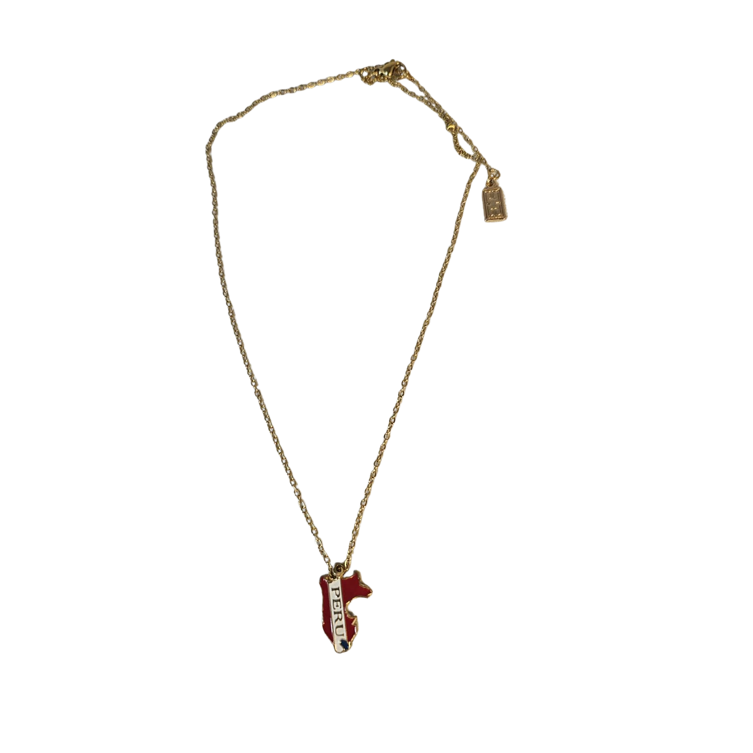 Featuring a hand-painted charm in the shape of Peru, accented with the colors of the national flag and finished in radiant gold, this unisex necklace is perfect for anyone who wants to wear their identity or gift something special and unforgettable.
